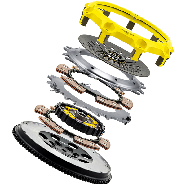 Mitsubishi Evo’s and Subaru STi’s have turbo four-cylinder engines that make big power. The turbo four-cylinder engines have a lot of torsional vibration and they are notorious for being hard on clutches (specifically stripping out the splines in the hubs). The problem? It was too difficult to get two spring centered hubs in such a small space to adequately reduce torsional vibrations. We created a clutch that is completely modular, and both friction plates mount to one Mono-Drive Hub. Problem Solved! Choose either organic or six puck style friction materials, a spring center or solid center Mono-Drive Hub. For race options we offer our Xtreme or MAXX Xtreme kits. This clutch is completely rebuildable and all the wear surfaces are hardened. What we keep seeing out in the marketplace, was either race clutches adapted for street use or clutches with significant tradeoffs such as: